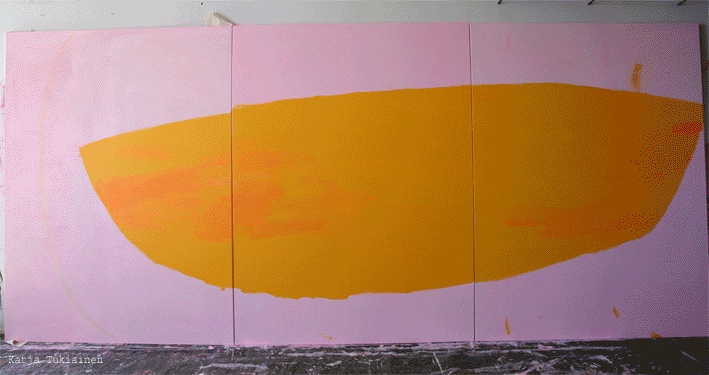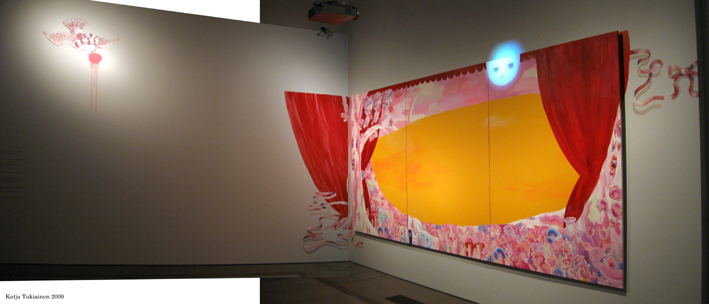 "Spring Fete", oil and animation on canvas and painting on the wall, 250 cm x 750 cm, Katja Tukiainen 2009