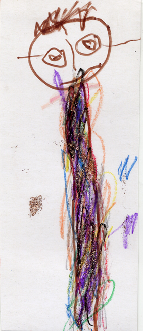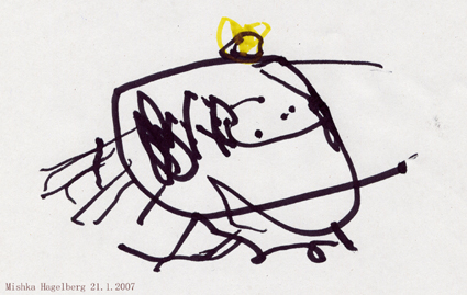 lettipäinen tyttö (äiti) istuu jakkaralla (4 v 4 kk)